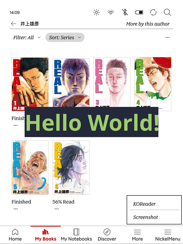 懶人包裡面除了有 KOReader,另外還包含 KFMon 和 NickelMenu。這兩個軟體協助我們在 Kobo 官方閱讀軟體新增自訂選單,讓我們可以啟動 KOReader。NickelMenu 讓你自訂想觸發什麼動作,甚至可以執行 Linux 指令或是自己寫的腳本。也可以新增螢幕截圖的功能到選單裡。